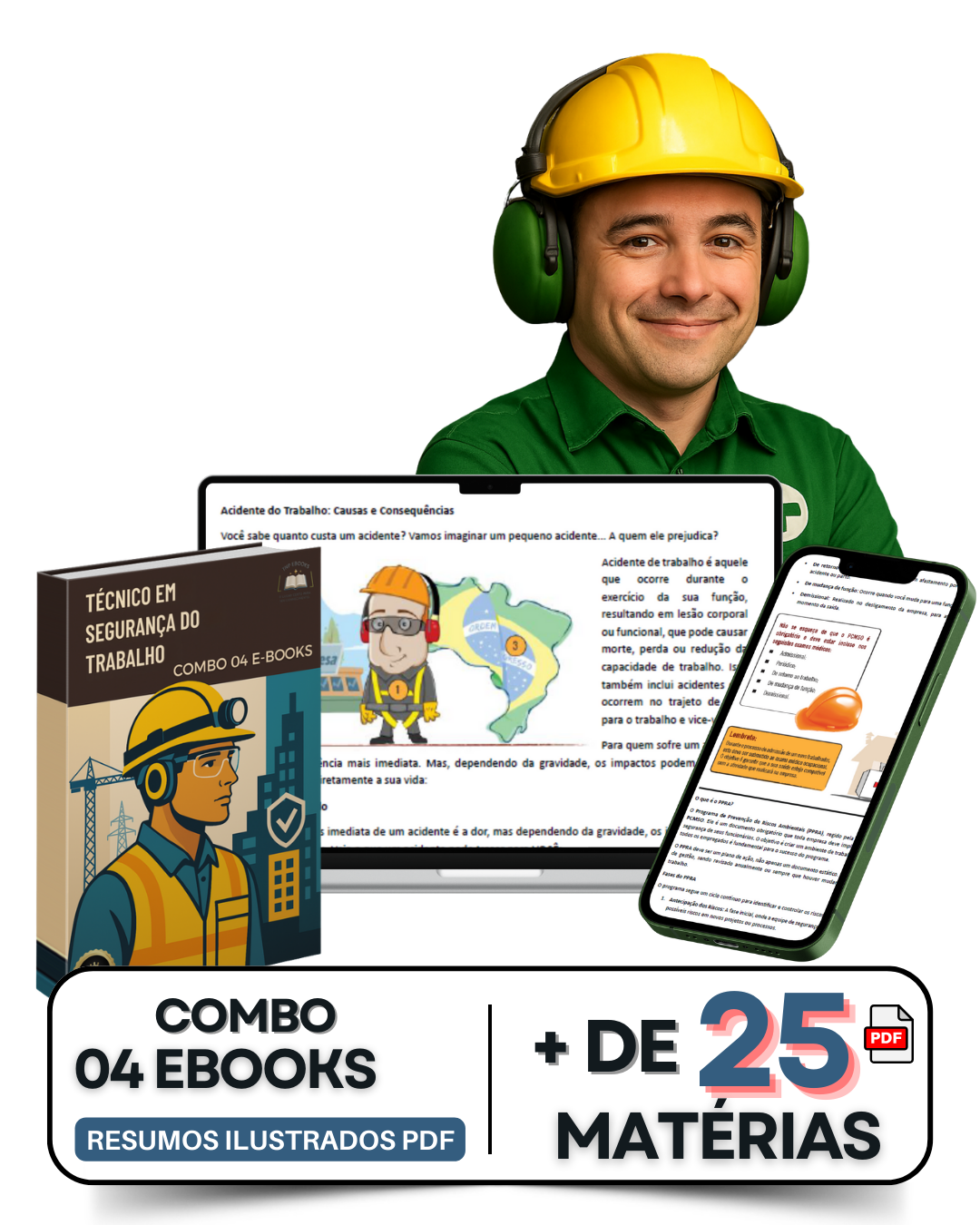 Garanta sua base técnica com um Combo Estratégico de 4 E-books focados em Segurança do Trabalho. Tenha acesso a uma Área do Cliente exclusiva para baixar seus resumos quando precisar, sem prazos ou letras miúdas.